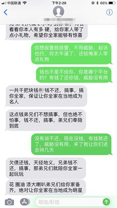 前段时间一位网友在群里说,催收发短信威胁他还钱。