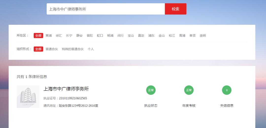 这上面写的是“上海市中广律师事务所”,直接百度“上海律师协会官网”,注意以org.cn结尾的才是官方网址。