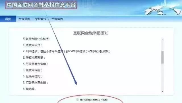 备注:该平台具体可举报的互联网金融业态包括网络借贷、互联网保险、互联网支付等行业违法违规。以个人名义或者代表单位,对互联网金融从业机构的违法、违规行为进行如实举报。