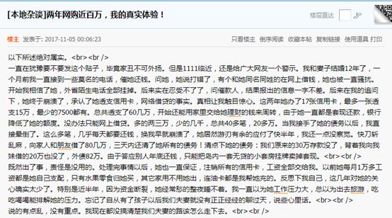疯狂购物的后果就是家里30万存款全部拿来还了钱,而且该网友还不得不卖房、向家人朋友借钱帮妻子还债。