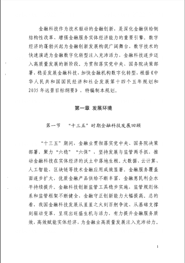 附《金融科技发展规划(2022-2025年)》全文: