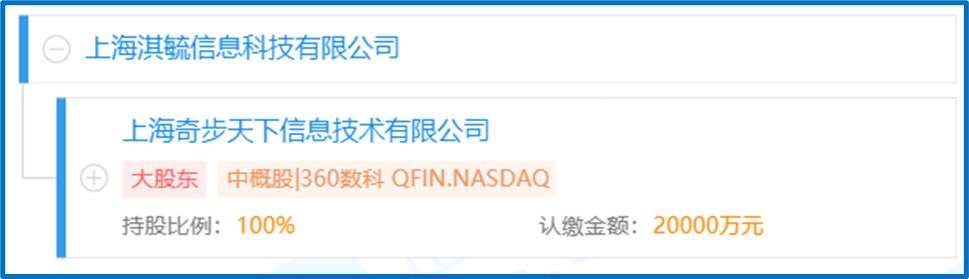 三六零网络小贷成立于2017年3月,大股东为上海淇毓信息科技有限公司,后者的唯一股东上海奇步天下信息技术有限公司为360数科旗下子公司。
