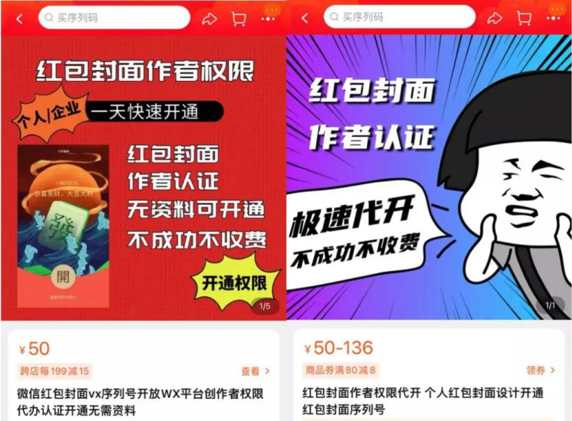 其次是资质认证、审核的环节,微信对于红包制作者有资质认证要求,企业要先申请公众号,之后还要提供一些认证材料。个人则需要申请开通视频号,并且要获得100个有效粉丝,于是商家们开始提供更“灰色”的服务,帮企业做红包认证通过审核,以及为个人视频号“刷粉”,或者直接帮代开权限。