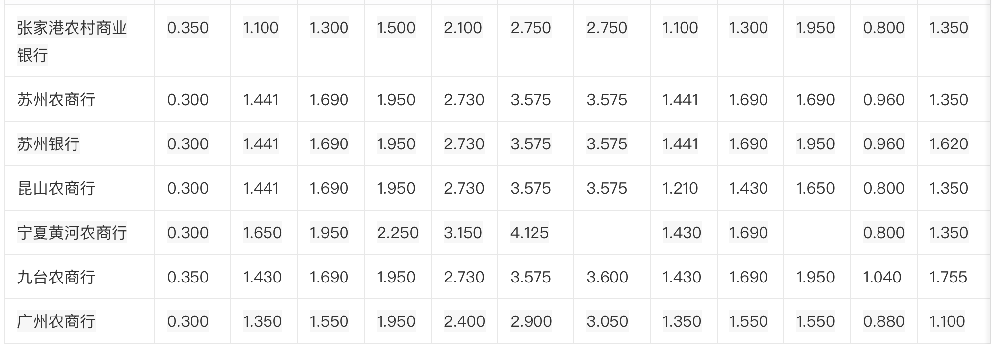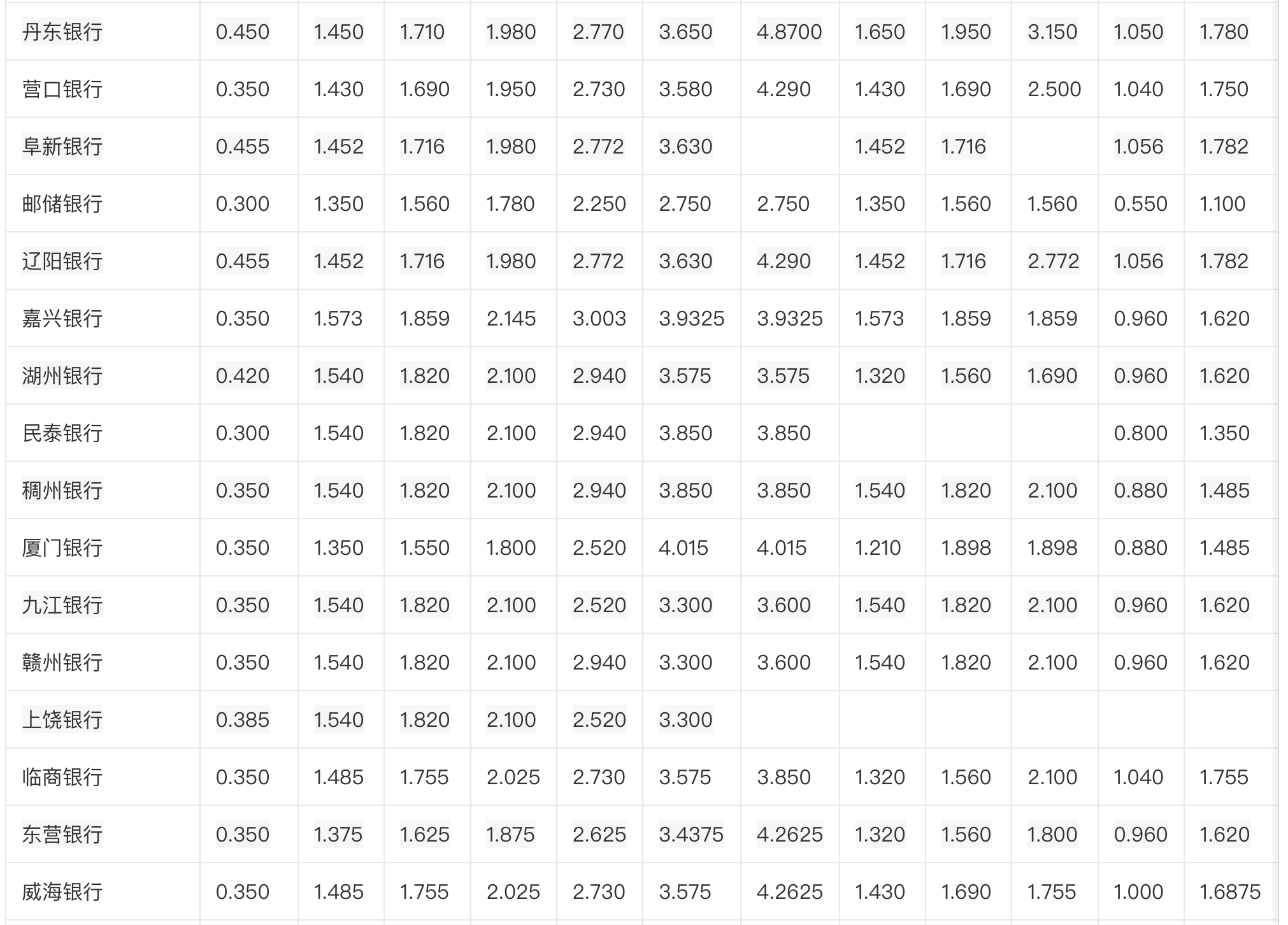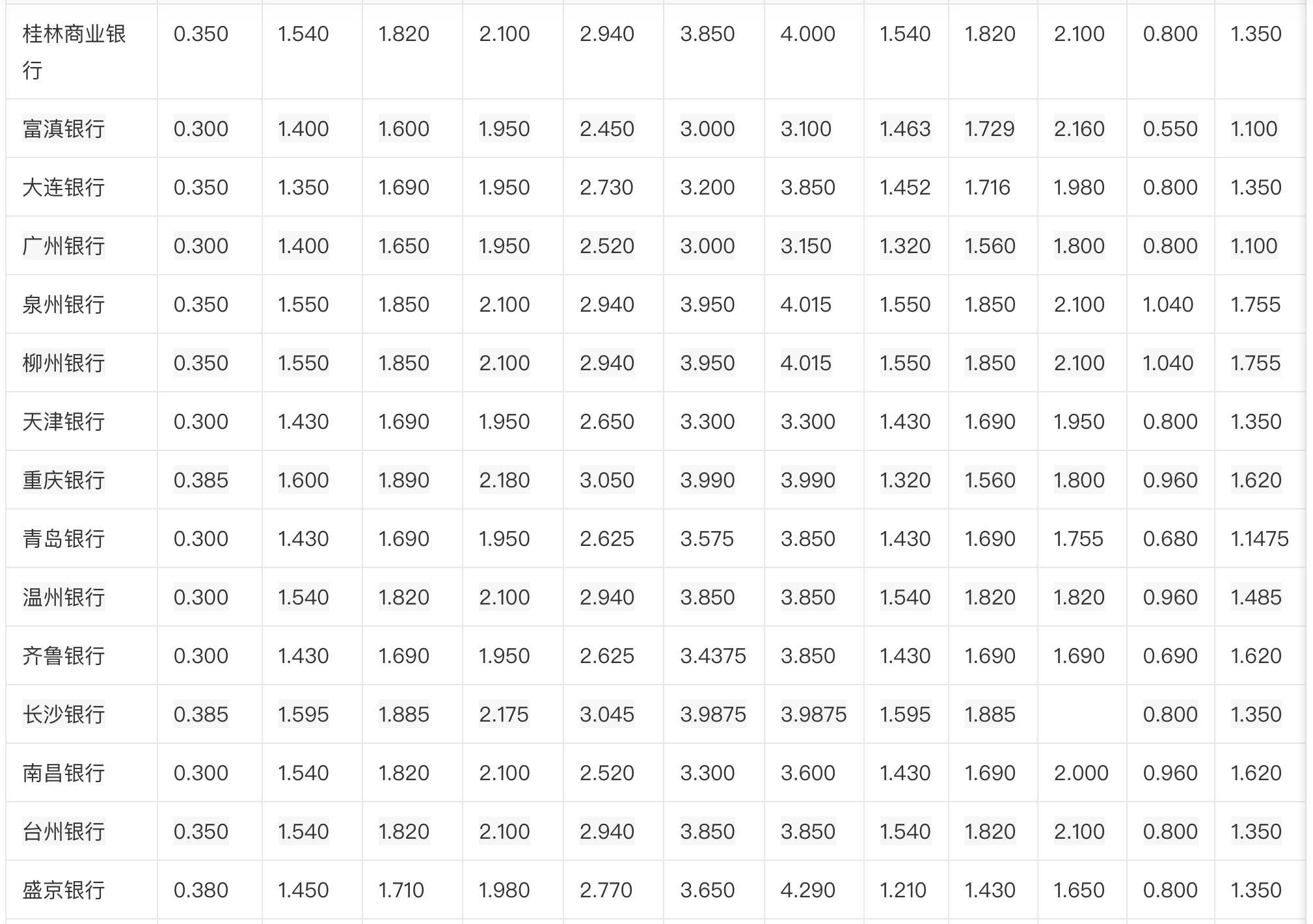 银行调整人民币存款新利息:2022年02月,各类银行存款最新利息表 2022-02-09 16:13:04 2022年02月,国内各类银行存款全新利息表 各类银行人民币存款利率表 注:官网的利率和实际当地银行执行的利率可能会有点差别,所以以上利率仅供参考,具体详情请咨询各银行网点柜台,不做任何建议,以当地各银行营业厅公布的利率为准 你也可能喜欢 详解15家全国性银行碳减排贷款:加权平均利率3.98%,6家国有行放款占比超七成 取消“认房又认贷”、增加公积金贷款额度……多地出台房地产新政 银行放贷节奏如何变化? 银保监会:P2P网贷机构全部停运 未兑付借贷余额压降到4900亿元 多家支付机构关联公司被吸纳为支付清算协会新会员,杉德支付关联方杉付通为多家无资质放贷平台导流,相关平台被指收取高额砍头息或违法