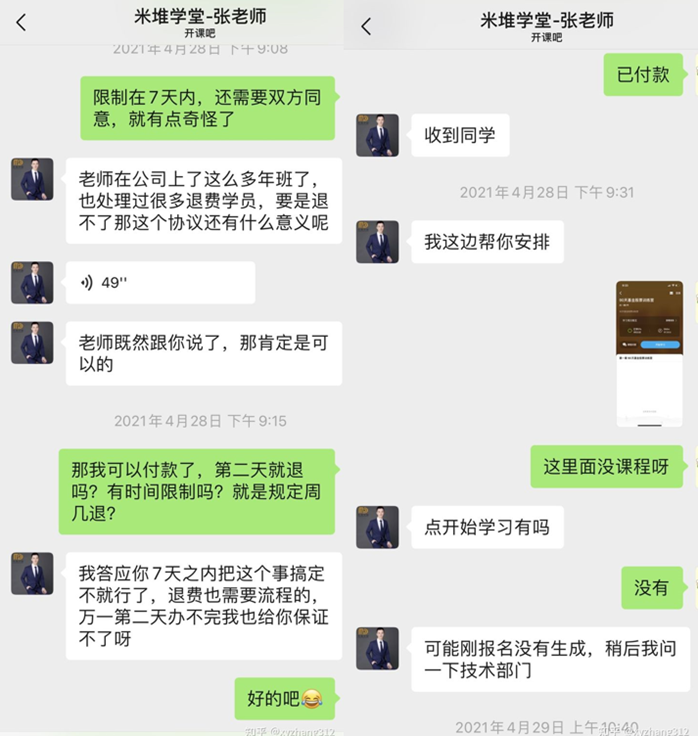 值得注意的是,上述网友的遭遇并非个例,米堆学堂理财课打着“财富自由”的广告,却诱导学员购买7998元的VIP课程,最终让学员背负贷款,生活没有因为上了理财课变好,相反因为办了分期贷款而更加困难。
