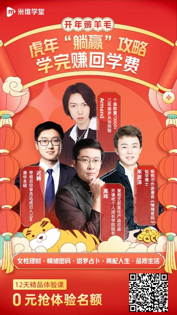 如果说米堆学堂的“主打”课尚有值得学习之处的话,其推出的女性理财、情绪密码、塔罗占卜就纯属搞噱头,带节奏。