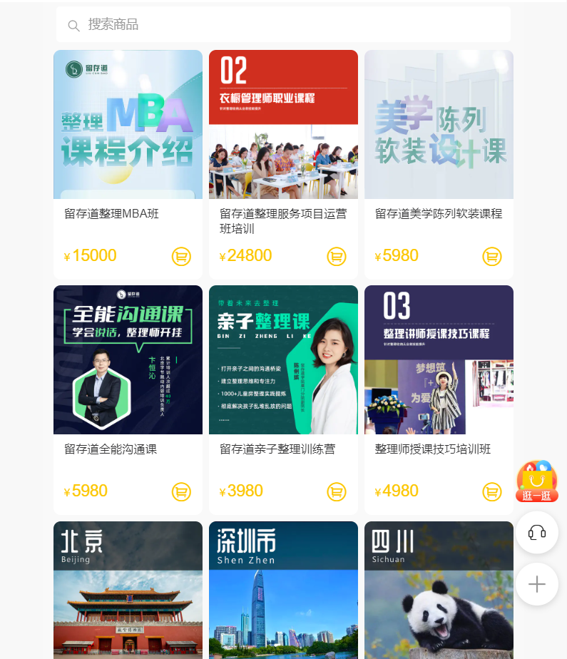其次是收纳机构培训,该类课程由专门的收纳机构举办,班型和价格较为多样,包括留存道、艺恩整理、微绒家等。以留存道为例,其班型分为技能班、运营班、MBA班,售价分别为4980元、24800元、15000元。其中最贵的运营班包括服务项目、方案、团队、管理培训,引流训练,客户管理等方面,形式为线下,时长共6天。