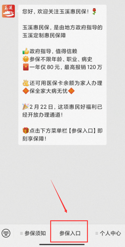 玉溪惠民保在哪里买? 2022-02-25 18:46:19 最佳答案: 玉溪惠民保可以通过“玉溪惠民保”微信公众号上参保,流程如下: 1、打开微信APP,搜索关注“玉溪惠民保”。 2、点击“玉溪惠民保”底部菜单栏“参保入口”。 3、进入参保主页面,了解保障详情后,点击立即参保。 4、填写个人信息,也可以选择继续添加参保人,为家人投保,点击提交订单即可。 以上步骤操作环境: 手机型号:华为nova6 系统版本:HarmonyOS2.0.0 微信APP版本号:VerSion8.0.19 你也可能喜欢 办理年度汇算需要准备什么 钱存在银行卡里有利息吗 基金净值高适合买入吗 无业能申请房贷吗
