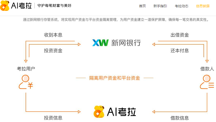 AI考拉合规备案—银行存管页面披露,通过与新网银行存管系统,将实现用户资金与平台资金隔离管理,为用户建立一道保护屏障,确保每一笔交易的真实性。