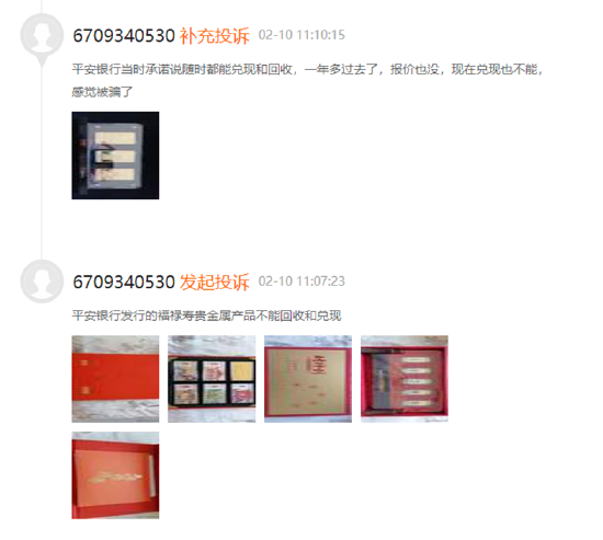 2020年11月初,潘先生有意将上述购入的产品变现、出让,遂前往致电平安银行客服后才得知,平安银行方面不会回收上述产品。随后,潘先生又前往当地的钱币中心咨询,对方称上述产品只是工艺品(纪念品),其真正的价值远远低于购买价格。