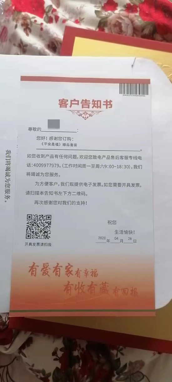 据贵州省贵阳市的阿豪反映,自己曾于2020年4月接到平安银行信用卡中心推销人员的电话推销,对方在电话中表示,“福禄寿,财神到”的福禄寿贵金属产品具有收藏和投资价值,推荐阿豪购买。另外,对方还在电话里承诺,如果想要退回此产品,银行方面随时都能回收,并且可以全额返还购买费用。