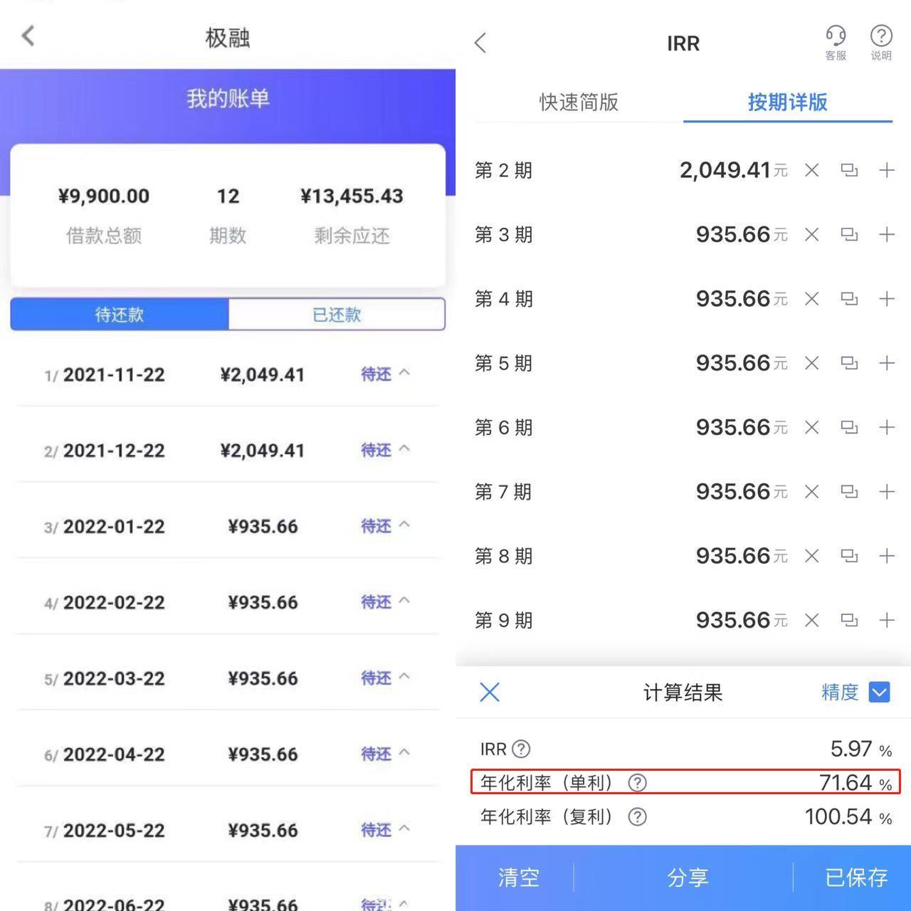IRR口径年化利率达70%