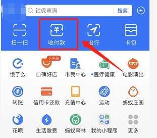 (1)用户登录支付宝之后点击上方的“收付款”;