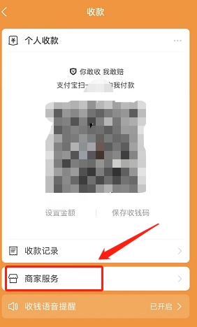 (2)选择“二维码收款”,然后点击“商家服务”;