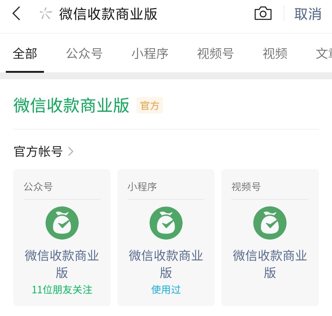 【1】微信搜索“微信收款商业版”,点击官方小程序。