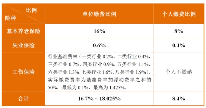 【4】工伤保险:单位缴纳比例1%,个人不缴费