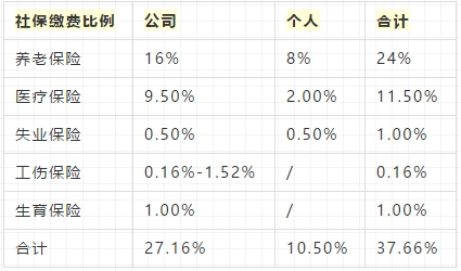 每个地区社保的公司和个人缴费比例会有所差距,而且缴费的基数也会有所差异。此前,大多数地方的缴纳比例是这样的(各地标准不同,以下内容仅供参考):