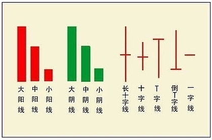 【2】柱体:这个柱体其实就代表了开盘价和收盘价之间的价差,价差越大柱体越长。当红色柱体很长时我们就称之为大阳线,此外还有中阳线和小阳线,反之则是大阴线、中阴线和小阴线。