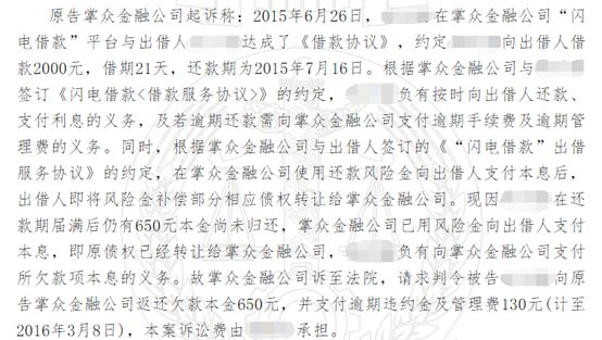 在中国裁判文书网上看到这样一份民事判决书,一借款人向闪电借款借了2000元,结果有650元的本金未归还,最后被闪电借款起诉了。
